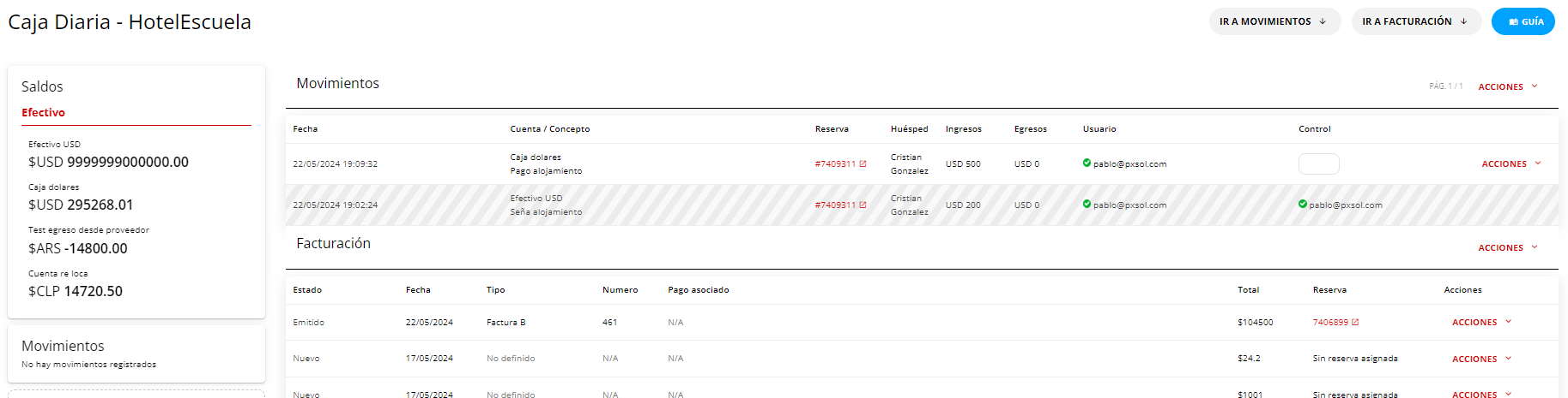 2- Se mostrarán todos los movimientos de dinero y facturas realizadas en el turno: