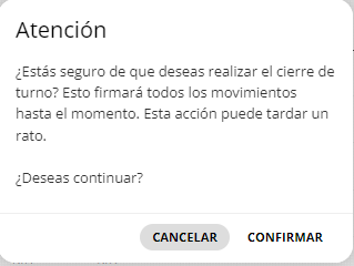 6- Pinchar en CONFIRMAR para avanzar con el cierre