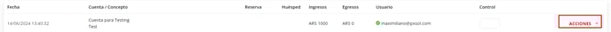 3- Ingresar al ícono de Acciones y seleccionar Ingreso.