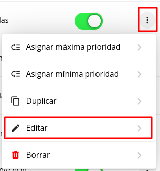 3- En el caso de que la Promoción ya esté creada, deberá buscarla en el listado que muestra la aplicación y seleccionar los tres puntitos y luego Editar en la columna Acciones.