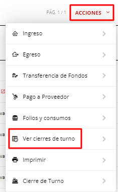 2- Vamos a seleccionar el botón de Acciones - Ver cierres de Turno, arriba a la derecha, dentro de caja diaria.