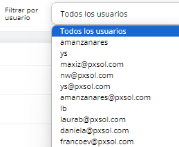 6- Podemos filtrar según el usuario que queremos buscar haciendo clic en la esquina superior derecha y seleccionando el usuario buscado