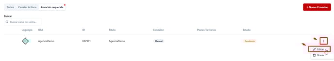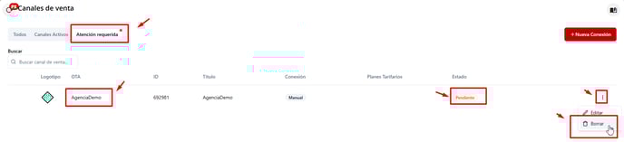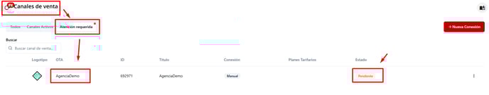 Al hacer clic en "Revisar solicitud", el sistema redirige a la aplicación Canales de Venta, dentro de la sección Atención Requerida. Allí se visualizan todas las solicitudes generadas por los distribuidores turísticos.