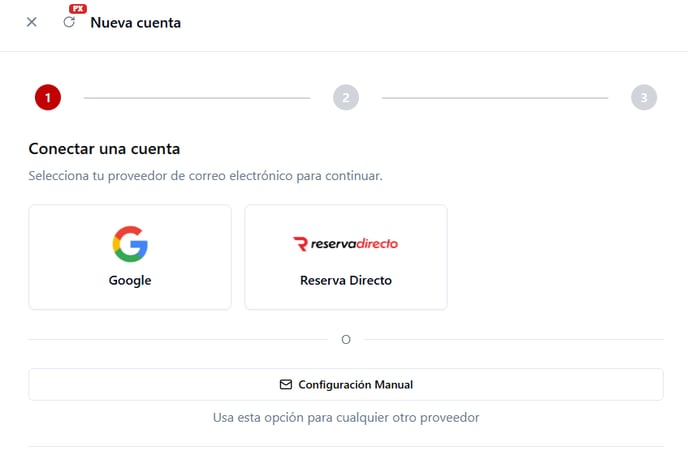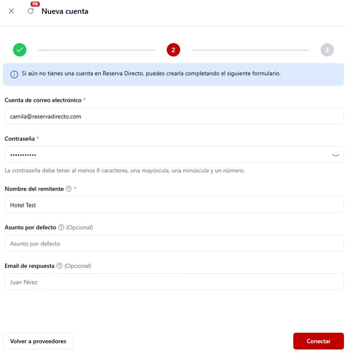 El sistema genera automáticamente una cuenta con dominio @reservadirecto.com. Si necesitás crear una cuenta adicional: