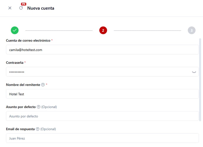- Nombre del remitente: nombre que verá el destinatario como remitente del correo. Por ejemplo el nombre de la propiedad.