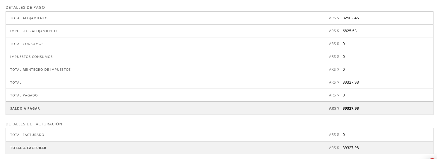 - Total alojamiento: muestra el total sin impuestos