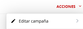 Editar: Permite configurar los datos de la campaña como asunto, plantilla, remitente y mail de prueba