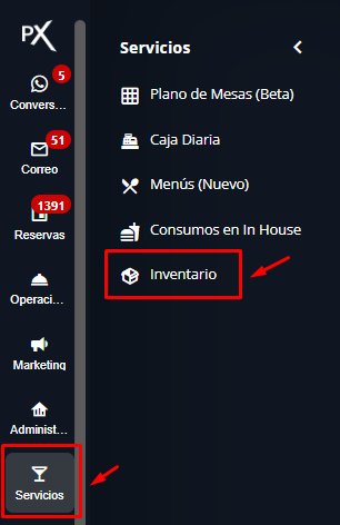1- Desde el menú principal, buscar dentro de Servicios, la aplicación Inventario y hacer clic para abrir la aplicación: