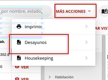 ¿Cómo visualizar los desayunos desde Estado de habitaciones?