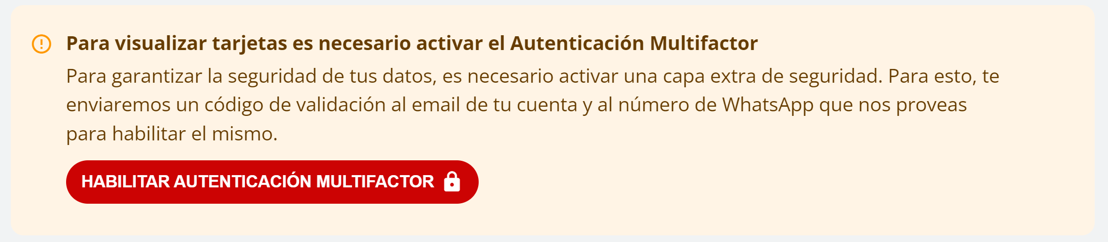 IMPORTANTE: Si bien la validación del número de WhatsApp que utilizará para el doble factor debe hacerla sólo una vez, el pin que le llegará para ver las tarjetas de crédito en la reserva, deberá solicitarlo cada 1 hora, o 10 visualizaciones de tarjetas (lo que suceda primero).