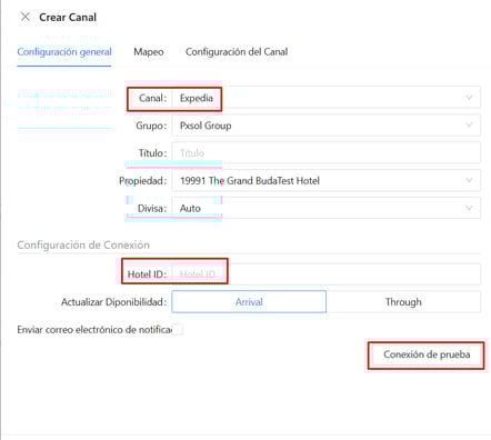 Selecciona en el desplegable el canal Expedia