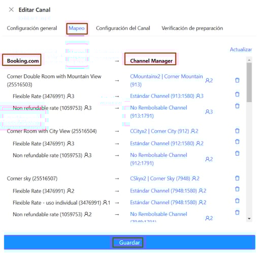 - En el margen izquierdo aparecerán las categorías y planes tarifarios creados en Booking. Es importante recordar que solo se pueden mapear planes tarifarios independientes.