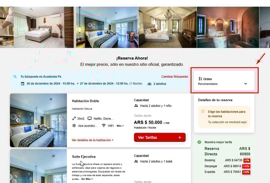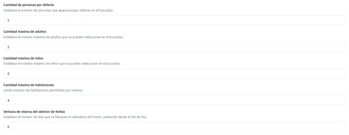 - Cantidad máxima de habitaciones: determina el número máximo de habitaciones que un usuario podrá solicitar en una sola búsqueda.