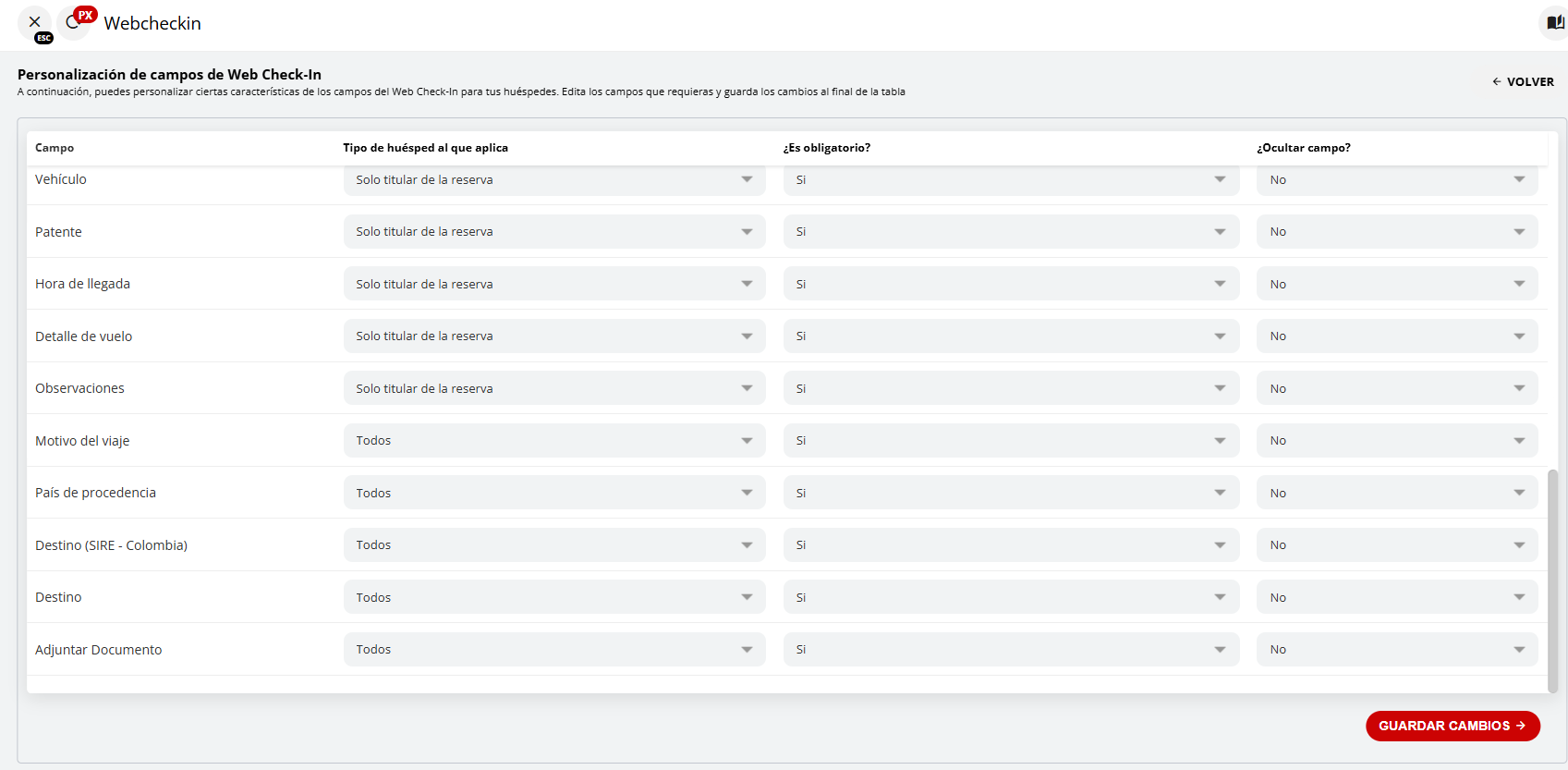 b- ¿Es obligatorio?: Define si el llenado del campo es obligatorio u opcional para el huésped que está completando el check in online