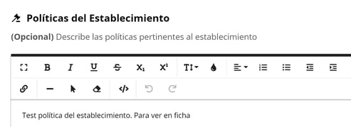 También desde el mismo lugar, podrán escribir las Políticas del Establecimiento que aparecerán en la ficha. La colocación de este texto es opcional