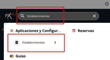 2- Dirigirse al omnibox que está en la parte superior de la plataforma, en la búsqueda poner Establecimientos y luego hacer click en la aplicación