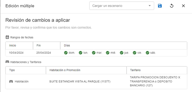 Ver guía: Edición múltiple por habitación en Tarifas y Disponibilidad