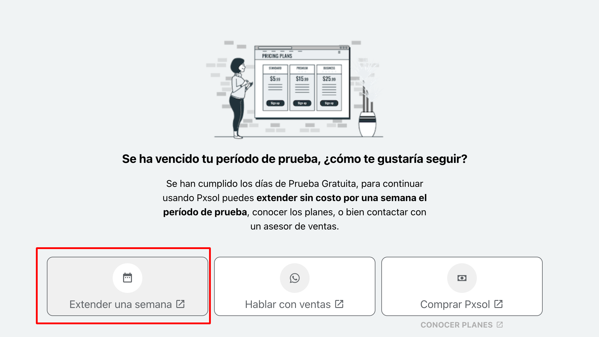 Cuando ha finalizado tu período de prueba, tienes la opción de extender una semana más tu trial siguiendo los pasos a continuación