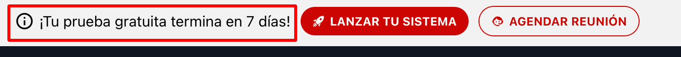 Recuerda que los días restantes de prueba se indican en la parte superior del sistema.