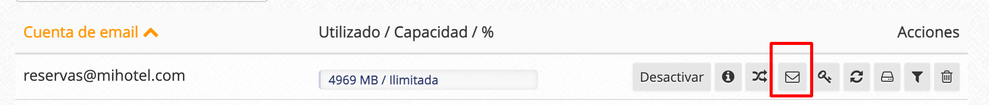 Desactivar: desde esa acción se podrá desactivar el correo si necesidad de borrarlo y perder los correos que han sido enviados a esa cuenta