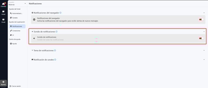Para activar el sonido de las notificaciones deberá seleccionar el desplegable de Sonido de Notificaciones y activar el Switch