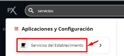 3- En la búsqueda poner Servicios y luego hacer clic en la aplicación "Servicios del Establecimiento".