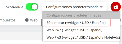 5- Las primeras 2 acciones que haremos ahí es activar el modo avanzado y en Configuraciones predeterminadas seleccionar Sólo motor