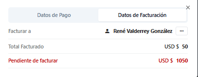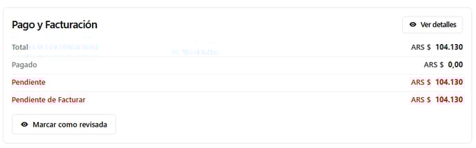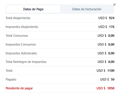 Permite visualizar en detalle los datos de Pago y de Facturación totales relacionados a esta reserva
