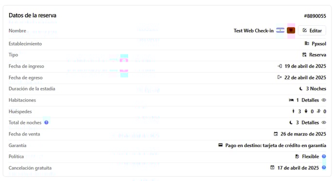 En datos de la reserva encontraremos la siguiente información