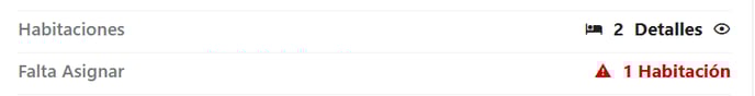 Habitaciones: Indica la cantidad de habitaciones que se vendieron y en el detalle cómo están asignadas cada una de esas habitaciones. En caso de tener una habitación sin asignar se agregará una línea que indica la habitación sin asignar y aparecerá en color rojo y en el detalle de habitaciones