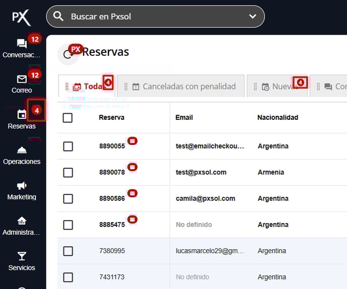 Esto facilita la visualización de Nuevas reservas y reservas en las que me han enviado un correo. De esa manera puedo mantener al día el Estado de todas las reservas y visualizar a tiempo las reservas que tengo que gestionar