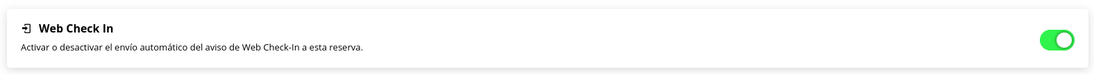 - Web check in: permite activar o desactivar el envío automático del aviso de Web Check-In a esta reserva, presionando en el botón verde.