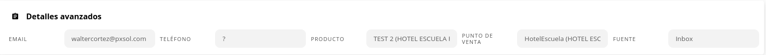 - Detalles avanzados: información adicional de la reserva, tal como el correo y teléfono del huésped, los datos del establecimiento y la fuente por la que se vendión la misma.