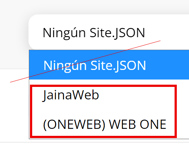 2) Elige un Site.Json (Producción): Si el cliente ya tiene web con pxsol ese campo no puede estar configurado con la opción Ningún Site.Json. Debe estar en uno de los templates ONE si el hotel tiene plan Starter, o en otro template si el hotel es de Full para arriba