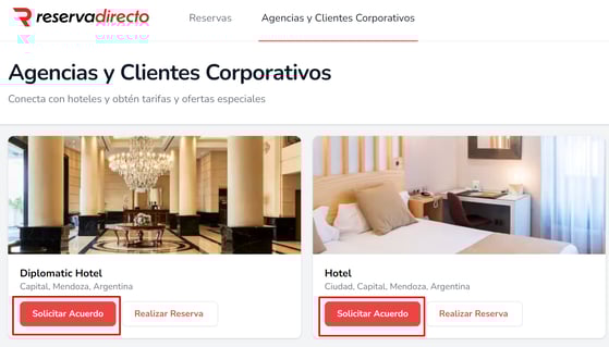Si un usuario registrado o agencia solicita un acuerdo desde su panel de Reservadirecto, en el apartado de Agencias y Coorporativos
