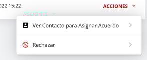 Si deseas aceptarla hacer click en Ver Contacto para Asignar acuerdo. Esto despliega los datos del contacto para que puedas vincular el acuerdo